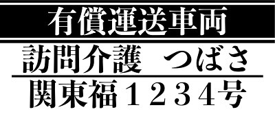 | 自家用有償旅客運送 (福祉有償運送・交通空白地有償運送) | 運送者(事業者)の名称 「有償運送車両」の文字 登録番号(関群福第◯◯号、埼玉県交第◯◯号など) |